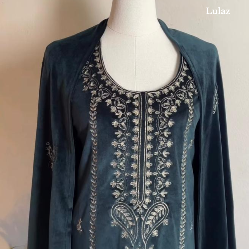 Premium Deep Teal Green Velevt Kurta Set
